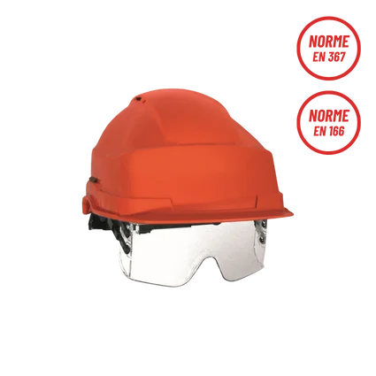 - Conforme aux normes : EN 397 (protection crânienne) et EN 166 (protection oculaire).